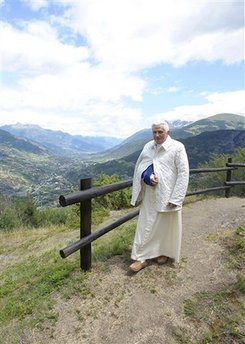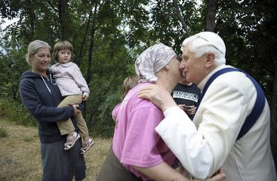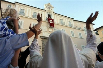 -> Et ici, une courte séquence video montrant le retour du Saint-Père dans "son" chalet, accueilli par les dames qui s'occupent de sa maison: Les anges gardiennes