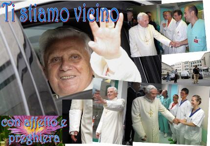 ... non potevo non farmi presente oggi... Ti stiamo vicino con affetto e preghiera- Sempre sorridente, come se non volesse dar lavoro a nessuno. Carissimo Santo Padre, ti vogliamo bene (Gloria)