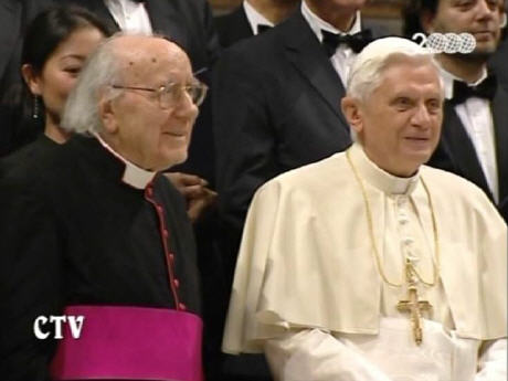 Mon amie Carlota attire mon attention sur une superbe interviewe de Mgr Domenico Bartolucci, maître de choeur émérite de la Chapelle Sixtine, 90 ans révolu, et en pleine forme, musicien reconnu et en quelque sorte réhabilité par Benoît XVI qui organisa en son honneur un concert mémorable (dirigé par lui) en juin 2006.