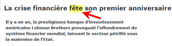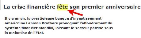 Depuis ce matin, nous entendons parler du 1er anniversaire du début de la crise financière (était-ce bien le début?).