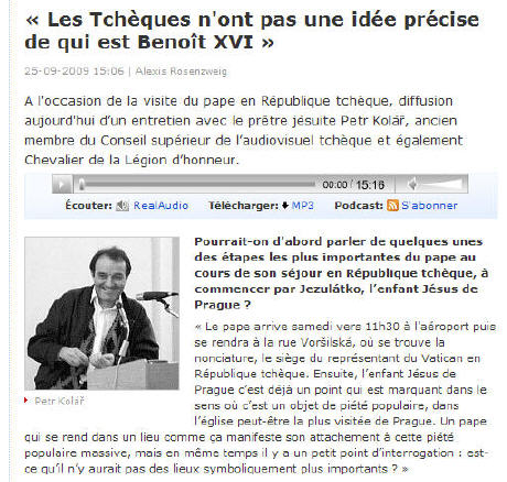 En voilà assez: réaction à une interviewe d'un père jésuite, sur le site Radio Praha en français, (27/9/2009)