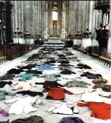J'en retiens le plus présentable (si j'ose dire), cet étalage de frippes, "oeuvre" de Boltanski, dans l'Eglise Saint-Eustache, durant la semaine Sainte de 1994.