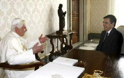 François Fillon a été reçu samedi matin par le pape Benoît XVI, avec lequel il a évoqué les rapports bilatéraux et les sujets internationaux, avant d'assister dimanche à la canonisation de la Française Jeanne Jugan, fondatrice des Petites soeurs des pauvres.