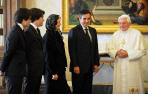 A l'issue de l'échange en tête-à-tête, François Fillon a présenté au pape son épouse Pénélope, d'origine galloise convertie au catholicisme, coiffée d'une mantille noire, et deux de ses cinq enfants, Antoine et Edouard, qui faisaient partie de la délégation de seize personnes qui l'accompagnait.