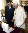 Le chef du gouvernement a offert au souverain pontife "Voyages en Italie" et "Rome-Naples-Florence" de Stendhal illustré par les peintres du romantisme ainsi que deux CD de chants de l'abbaye de Solesmes, ville de la Sarthe dont il est conseiller municipal.