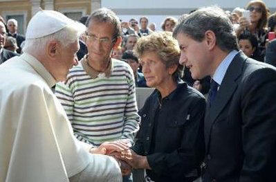 A leurs côtés, à l'audience générale, ils ont été rejoints par le maire, Gianni Alemanno, à qui Wilma réserve des caresses sur son visage. "Pour nous, c'est une journée spéciale. Mon cœur est plein de gratitude".