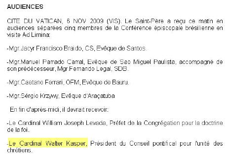 Je ne pense pas que le cardinal Kasper soit un habitué des audiences papales - contrairement au préfet de la CDF, le cardinal Levada.