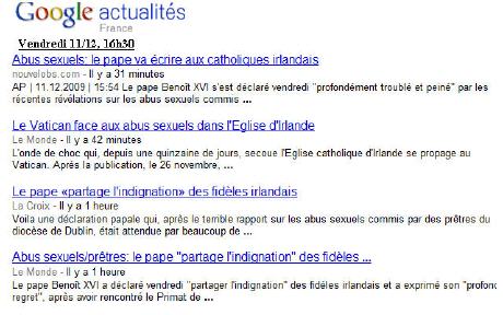 Réflexions de circonstance, et capture d'écran "Google" (11/12/2009)