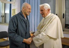 Benoît XVI s'est rendu à l'hôpital romain pendant une demi-heure, pour y rencontrer le cardinal Roger Etchegaray, qui se remet de sa fracture du fémur de la veille de Noël