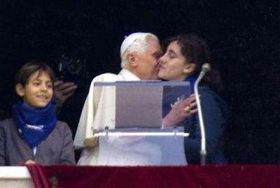 Au terme de l'Angelus, consacré aujourd'hui à la charité, ou plutôt l'amour, signe distinctif du chrétien (L'amour est le don « le plus grand », qui donne de la valeur à tous les autres, pourtant « il ne se vante pas, ne s'enfle point d'orgueil », au contraire, « il se réjouit de la vérité » et du bien d'autrui. Celui qui aime vraiment « ne cherche pas son propre intérêt », « ne soupçonne point le mal », « il excuse tout, croit tout, espère tout, supporte tout »), hors-programme sympathique pour Papa Benedetto XVI et les deux jeunes membres de l'Action Catholique romaine qui l'accompagnaient.