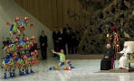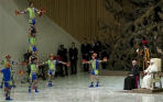 Comme chaque année à cette époque, des artistes de cirque (ici l'American Circus de Rome) sont venus exécuter devant lui une exhibition de jonglerie et de pyramide humaine, qui, au vu de son sourire et de ses applaudissement, a semblé lui faire très plaisir.