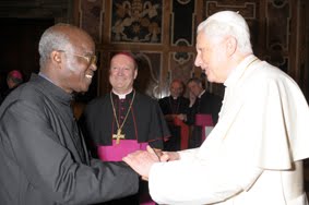 " Un homme de foi et un humaniste, très attentif, soucieux de construire les relations avec les autres dans la vérité et je n'ai pas été surpris quand il a choisi comme devise épiscopale "Cooperatores Veritatis", et aussi que, juste avant le conclave qui devait l'élire comme Pasteur de l'Eglise Universelle, il ait fait le diagnostic le plus profond de la situation spirituelle de notre temps en parlant de la menace universelle de la "dictature du relativisme". Le continent noir, qui apparaissait comme le plus exposé, a été heureux de saluer à nouveau en lui le pasteur qui peut défendre ce qui est essentiel à l'homme: sa relation vitale avec la vérité.