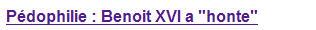 L'autre titre qui a été répété en boucle par les medias, et qui contredit en partie le premier (mais peu importe, l'essentiel étant d'humilier le Pape et de le faire passer pour coupable) est "Le Pape a honte". Comme s'il s'agissait d'une faute qui lui était personnelle. Or, Benoît XVI a écrit: [Au nom de l'Eglise], je vous exprime ouvertement la honte et le remord que nous éprouvons tous .