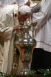 Dans l'Église primitive, l'huile consacrée était considérée, de manière particulière comme un signe de la présence de l'Esprit Saint, qui à partir du Christ se communique à nous. Lui est l'huile de joie. Cette joie est quelque chose de différent du divertissement ou de l'allégresse extérieure que la société moderne espére. Le divertissement, à sa juste place, est certainement quelque chose de bon et d'agréable. Il est bon de rire. Mais le plaisir n'est pas tout. Ce n'est qu'une petite partie de notre vie, et là où il veut être tout, il devient un masque derrière lequel se cache le désespoir ou au moins le doute que la vie soit vraiment bonne, ou qu'il vaudrait peut-être mieux ne pas exister.