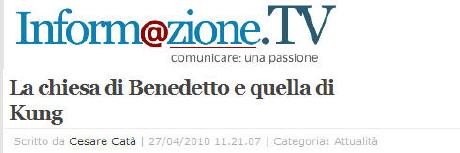 Un article d'un écrivain et philosophe italien, Cesare Catà (*), à propos de la lettre ouverte de Küng. (27/4/2010)