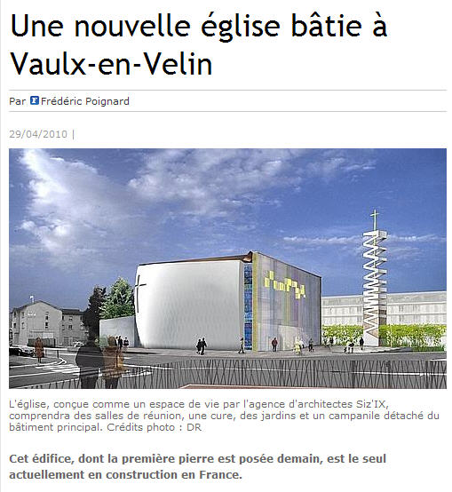 Une église-boîte à Vaulx-en-Velin en 2012. Le cardinal Barbarin vient d'en poser la première pierre. (1er/5/2010)