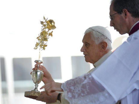 Que s'est-il passé ? Benoît XVI s'est approché de la statue pour y déposer un présent, une rose en or et argent, symbole d'action de grâce. Il venait de lire une prière où il évoquait son prédécesseur Jean-Paul II, son attentat, et les souffrances de l'Eglise (voir l'article ci-dessus). Il était là dans son rôle de pape.