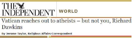 Le Vatican espère organiser une série de débats à Paris, l'année prochaine. Mais les non-croyants militants espérant avoir une chance de s'opposer à de hautes personnalités ecclésiastiques sur l'existence de Dieu vont être déçus: l'Eglise a averti que des athées de grande renommée tels que Richard Dawkins et Christopher Hitchens ne seront pas invités (ndt: mais qu'attendaient-ils?).