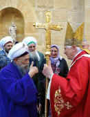 Puis, le cheik lui a expliqué qu'il vivait de l'autre côté de la ligne verte, mais que quand il avait appris que le Pape de Rome était là, il avait tenu à venir. Il avait déjà eu l'occasion de connaître Jean Paul II, lors de rencontres inter-religieuses.