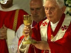 Dans son homélie , le Pape a médité sur le mystère de la croix. Toute sa méditation a porté sur le paradoxe suivant : la croix, symbole de souffrance et de mort à première vue, est en fait plus profondément « le triomphe définitif de l’amour de Dieu sur toutes les formes du mal dans le monde » et la manifestation du « pouvoir de l’amour qui s’offre en sacrifice. » La perspective est ainsi retournée : la croix devient « le symbole d’espérance le plus éloquent que le monde ait jamais vu », spécialement pour ceux qui souffrent le plus, et elle « offre une espérance sans limite à notre monde déchu ». Le Pape n’a pas hésité à conclure cette première partie de son homélie par cette affirmation audacieuse : « Le monde a besoin de la croix ».