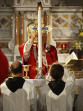 Toute la liturgie de la Parole a eu pour thème la Croix : préfigurée par le serpent d’airain élevé par Moïse dans le désert pour guérir les Hébreux de leurs blessures, elle est révélée au Golgotha où Jésus « est élevé pour que tout homme qui croit en lui ne périsse pas, mais ait la vie éternelle. »