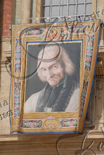 Commençons par ce qui était annoncé par le Bureau des Célébrations liturgiques de Sa Sainteté, hier, 10 Juin: "Une grande tapisserie avec l'image de Saint-Jean Vianney sera installée sur la loggia centrale de la basilique. Saint Jean-Marie Vianney a été le thème de l'Année sacerdotale et à cette occasion il sera proclamé par le Saint-Père patron de tous les prêtres".