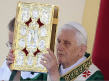 Rappelons que le 28 avril 2009, rendant visite à l’église Santa Maria de Collemaggio, à L’Aquila, en partie détruite par le tremblement de terre, Benoît XVI déposa le pallium qu'il portait le jour de l'inauguration de son Pontificat sur le reliquaire contenant les restes de Célestin V.