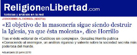 pour mieux le contrer. Interviewe de J.G. Horrillo, auteur du livre " En connaissant l'ennemi". "L’objectif de la franc-maçonnerie est toujours de détruire l’Église car elle gêne ", dit-il. Traduction de Carlota. (1er/7/2010)
