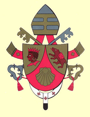 La différence avec le modèle précédent - que certains attribuent au cardinal Montezemolo - est que ce blason porte à nouveau la triple couronne - la triple couronne du Souverain Pontife - au lieu de la mitre, restaurant l'antique coutume, à laquelle même Jean-Paul II n'avait pas renoncée. L'innovation de la mitre à trois bandes, qui avait créé quelques perplexités parmi les spécialistes d'héraldique, côtoyait la forme traditionnelle.