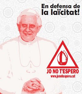 Ci-contre: Affiche hostile à la visite du pape. Editée par des laïques catalans, elle porte en rouge le slogan "Je ne t'attends pas".