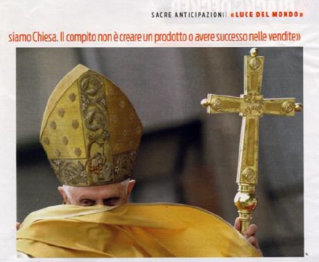 L'hebdomadaire italien Panorama (une publication du groupe Mondadori, dont la famille Berlusconi est actionnaire majoritaire) annonçait des anticipations sur le livre "Luce del Mondo" - à sortir en Italie et en Allemagne la semaine prochaine - dans son numéro du 18 novembre.