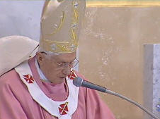 Dans l'attente de la traduction de l'homélie du Saint-Père, inspirée, splendide, en grande partie prononcée a braccio, sur le thème des dictatures et des faux prophètes, qui, au lieu de changer le monde, n'ont amené que destruction, voici quelques captures d'écran de Telepace.