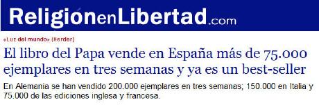 En tout cas ce livre d’entretiens du Pape semble bien se vendre, comme en témoigne l'article ci-dessous, paru sur religionenlibertag :