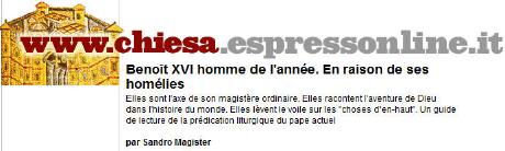 "Benoît XVI homme de l'année. En raison de ses homélies