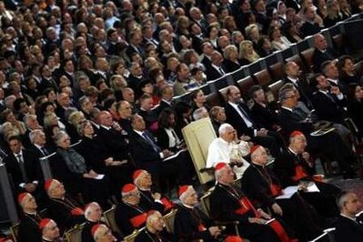 Et ainsi, l'ENI a pensé à un concert - peut-être pour compenser le bruit que produit inévitablement ce travail ! Pour cela, on a fait appel à l'Orchestre et au Chœur de l'Académie Nationale de Sainte Cécile , ce qui revient à dire deux institutions qui par leur histoire, la qualité de leur art et le son typiquement italien , représentent Rome et l'Italie sur la scène musicale mondiale. A l'Orchestre et aux Choristes, je veux offrir mes félicitations , souhaitant qu'ils puissent constamment se renouveler en esprit , pour donner vie - comme ce soir - à des œuvres immortelles . En particulier , je tiens à exprimer ma vive appréciation au chef d'orchestre Neeme Järvi , au pianiste Andrea Lucchesini et au maître de choeur Ciro Visco . Un salut particulier également au groupe des pauvres, assistés par la Caritas Diocésaine, que j'ai voulu inviter pour vivre avec nous ce moment de joie .