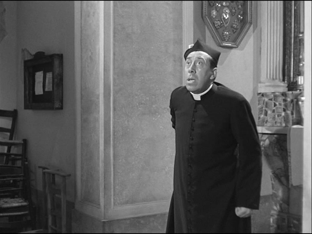 Quant à l'allusion à un film, il s'agirait à mon avis, mais je peux me tromper - de Dom Camillo (Fernandel) qui dialogue avec le Christ…