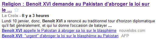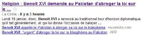 Lisant les dépêches d'agence sur Internet, je lis, à la première place:
