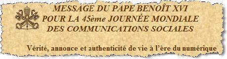 Cela dit, le texte du Saint-Père ne concerne plus les blogs et sites, il est essentiellement consacré à l'explosion des réseaux sociaux, Facebook, donc, dont on a pu voir récemment encore, par exemple à travers la "révolution tunisienne" quelle influence gigantesque (bonne ou mauvaise?) ils pouvaient assumer. C'est donc un enjeu de taille pour les catholiques, d'y être présents. Ils ne doivent pas en avoir peur.