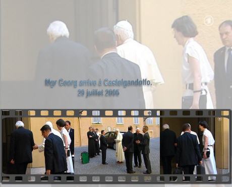 Georg Ratzinger vient souvent à Rome. «C'est toujours un moment très festif et très solennel lorsque je descend de l'avion, dit-il. Et puis il y a toujours un accueil joyeux de la part des Memores, des secrétaires, de Sœur Christine, qui rendent l'accueil très beau. Ensuite, je vais rendre visite à mon frère dans sa chambre. C'est notre première réunion, et c'est pour moi comme de rentrer à la maison, quand nous nous racontons les dernières nouvelles. La maison est la rencontre avec mon frère, où qu'il soit. Et je sens que là, la famille du pape est également devenue ma famille. On parle de Ratisbonne, des voisins, des gens qu'il connaît depuis longtemps, des camarades de classe. Tous les matins, ma pensée pour lui est qu'il puisse avoir la santé et la force, dont il a besoin pour accomplir sa mission. "
