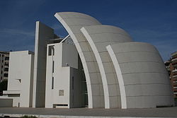 Pourtant, plusieurs parmi les églises nouvelles ont été confiées aux architectes contemporains les plus cotés, et le problème ne peut même pas résider dans les convictions religieuses des créateurs, ou leur absence, puisque l'un des derniers exemples négatifs est l'église de S. Paolo à Foligno oeuvre d'un certain Massimiliano Fuksas (ndt architecte contemporain italien né en 1944: http://fr.wikipedia.org/wiki/Massimiliano_Fuksas), un nouveau converti grâce au Pape Benoît XVI, comme il l'a dit dans une interviewe. Dans ce cas particulier, nous sommes confrontés à un objet qui ne démontre pas la moindre parenté avec la longue tradition des églises chrétiennes.