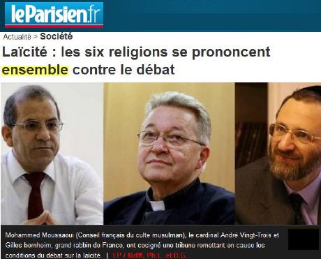 J'entends en boucle depuis ce matin sur une station périphérique: les six ""grandes"" religions de France sont contre le débat sur la laïcité.
