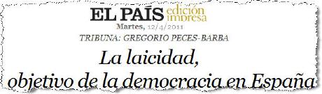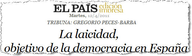 Carlota a traduit une "tribune" parue dans le quotidien espagnol "de gauche" El Pais. Le titre: La laïcité, objectif de la démocratie en Espagne (12/4/2011).