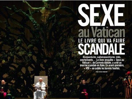 Et puis la sortie, le 14 avril, d'un livre intitulé "Sexe au Vatican", que j'ai déjà vu en pile dans une "grande surface culturelle" de ma ville, et qui faisait la couverture de VSD feuilleté dans un kiosque à journaux (il était bien en évidence, à l'entrée): une petite saleté, 4 pages de "dossier", avec des détails croustillants et ignobles, et sur une double page, une photo du Saint-Père et de Georg Gänswein à une audience de mercredi, salle Paul VI !