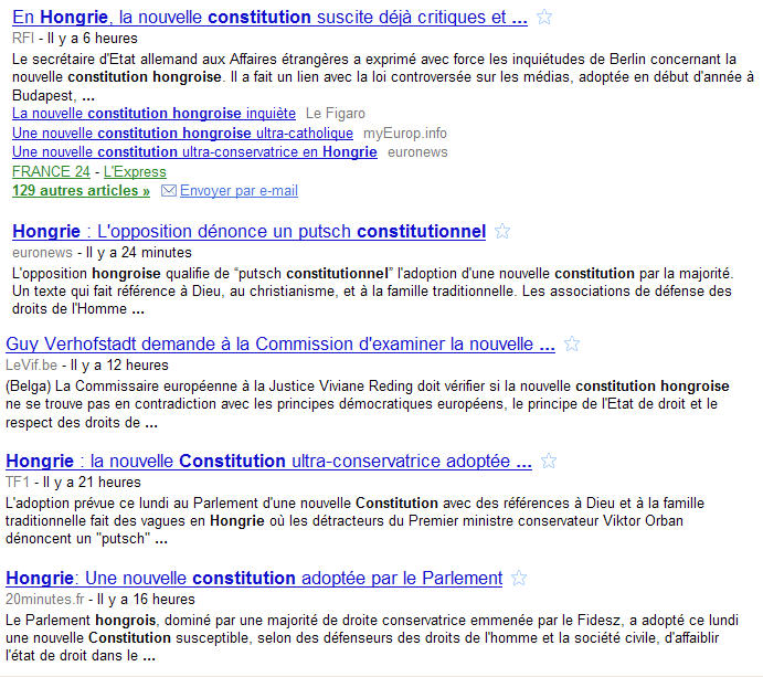 Elle fait référence aux racines chrétiennes! Les medias unanimes s'étranglent de rage. Mais en décembre dernier, le Saint-Père avait reçu Viktor Orban, et peu avant, il s'était adressé au nouvel ambassadeur hongrois, en des termes que l'on retrouve bien dans le texte. Dossier (19/4/2011)