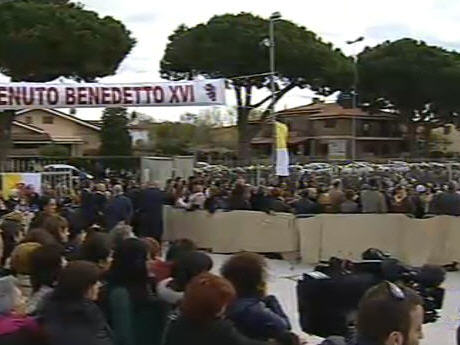 Un mot spécial d'affection et d'amitié, le Pape souhaite l'adresser à vous, chers jeunes qui m'écoutez, et à ceux de votre âge qui vivent dans cette paroisse. Le présent et l'avenir de la communauté ecclésiale et civile sont confiés d'une manière spéciale à vous. L'Eglise attend beaucoup de votre enthousiasme, de votre capacité à regarder vers l'avenir et de votre désir de radicalité dans le choix de vie.