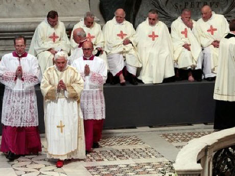 Nous tous nous devons toujours à nouveau apprendre à accepter Dieu et Jésus Christ tel qu’il est, et non tel que nous voudrions qu’il soit. Nous aussi nous avons du mal à accepter qu’il se soit lié aux limites de son Église et de ses ministres. Nous non plus nous ne voulons pas accepter qu’il soit sans pouvoir en ce monde. Nous aussi nous nous cachons derrière des prétextes, lorsque notre appartenance au Christ devient trop coûteuse et trop dangereuse. Nous tous nous avons besoin de conversion pour accueillir Jésus dans son être-Dieu et son être-Homme. Nous avons besoin de l’humilité du disciple qui observe la volonté du Maître. En cette heure, nous voulons le prier de nous regarder nous aussi comme il a regardé Pierre, au moment propice, avec ses yeux bienveillants, et de nous convertir.
