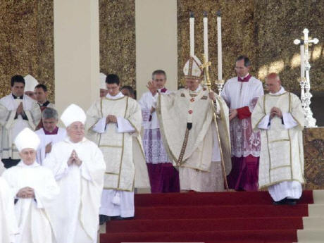 Comme cela avait été demandé avant le début de la célébration, au cours de la Messe, il n'y a a ni acclamations, ni chants, ni drapeaux ou banderoles. L'enthousiasme spontané, avec ses expressions très humaines de joie, va redémarrer quand le Pape Benoît descendra du podium pour repartir avec la papamobile.