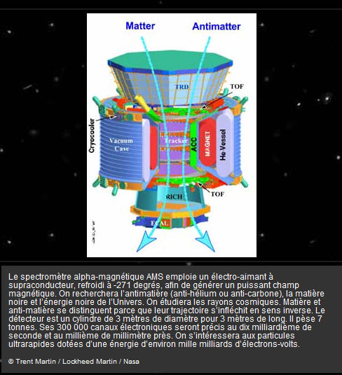 [Pour ceux qui sont intéressés, l'article se poursuit par des précisions de vulgarisation scientifique sur les fonctions du spectromètre par un physicien, spécialiste de l'anti-matière.]