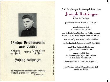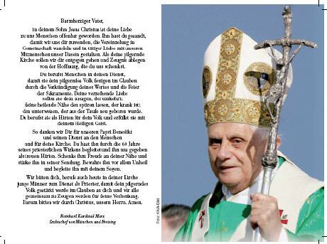 Pour le 60e anniversaire de l'ordination, l'archevêché de Munich a édité un dépliant, avec le fac-similé du "faire-part" de 1951, et une belle prière, que Marie-Anne a bien voulu traduire pour nous. (23/6/2011)