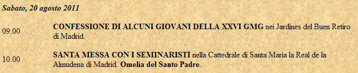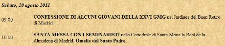 Vendredi, Benoît XVI rencontrera les jeunes religieuses au monastère d '«El Escorial». Il parlera ensuite à 1000 professeurs de collège pour discuter du rôle qu'ils jouent dans l'éducation des jeunes.